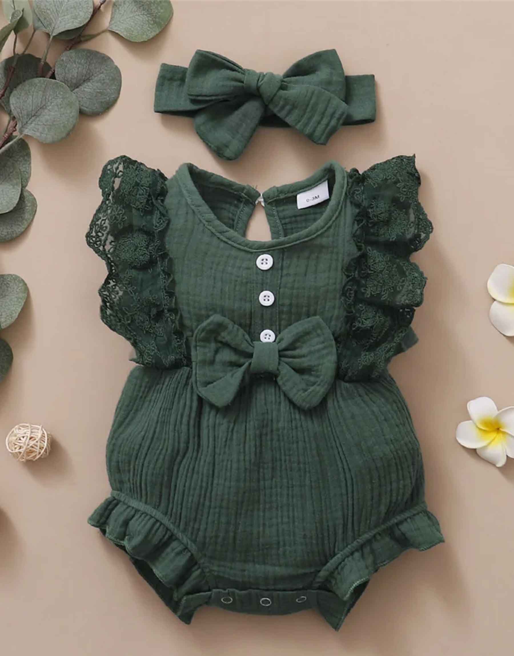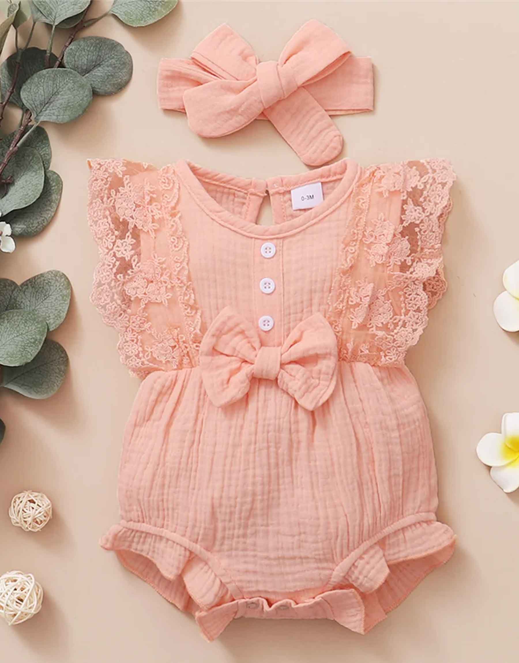 Barboteuse À Col Rond Et Nœud En Dentelle Pour Bébé Fille