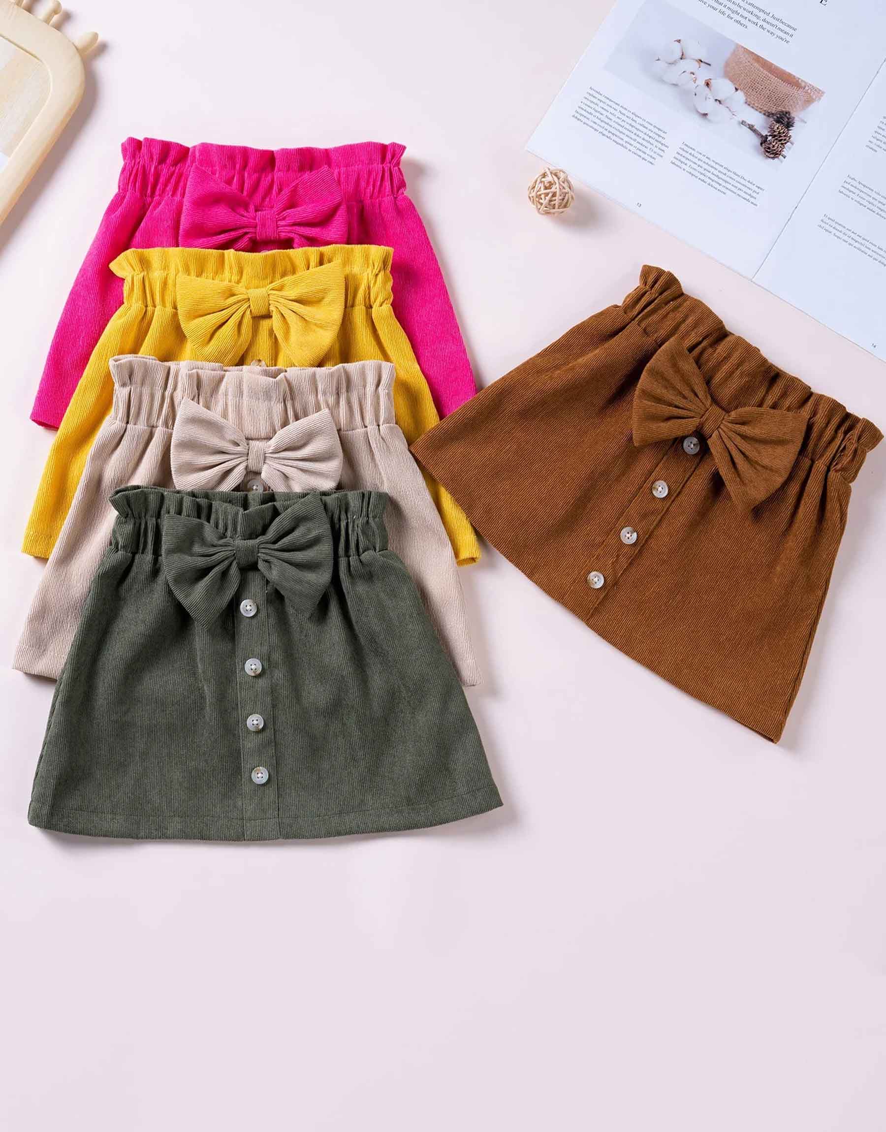 Jupe Courte Boutonnée Bébé Fille, Nœud, Décontractée