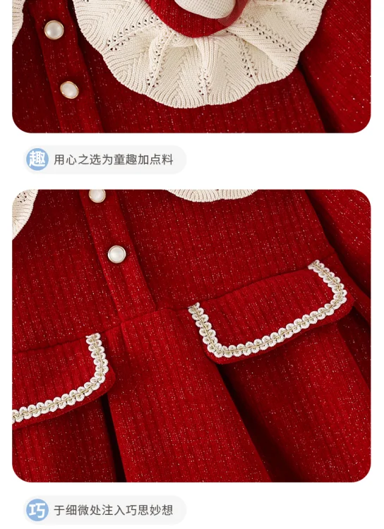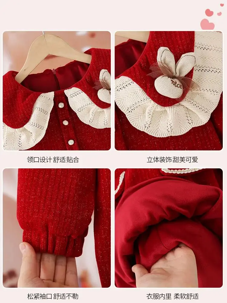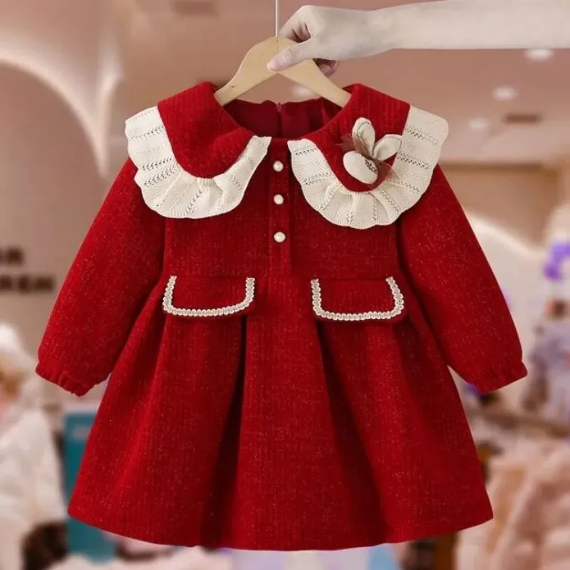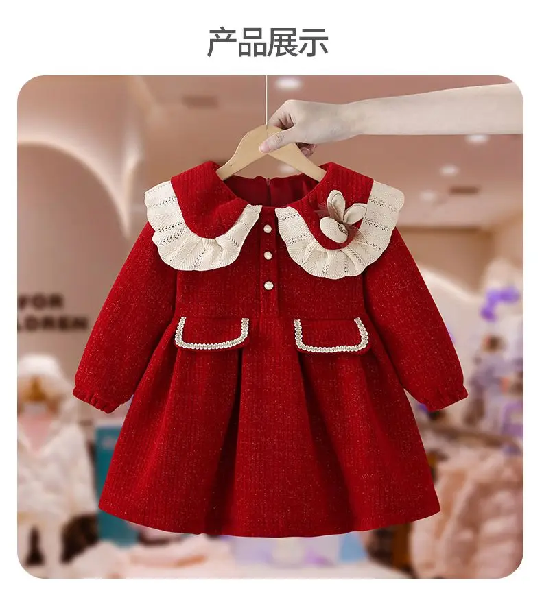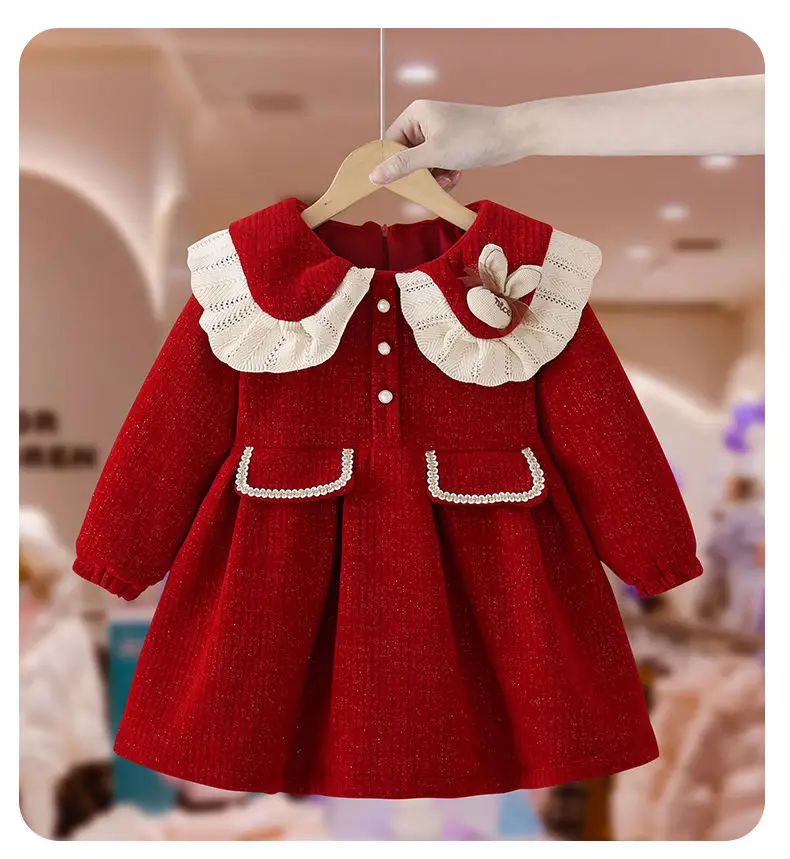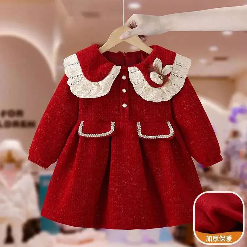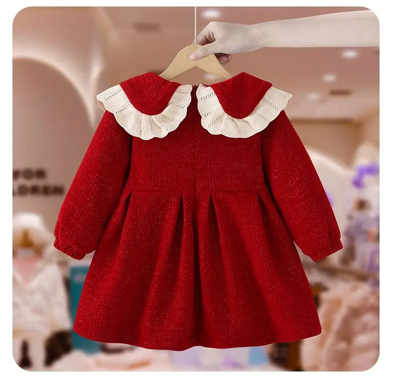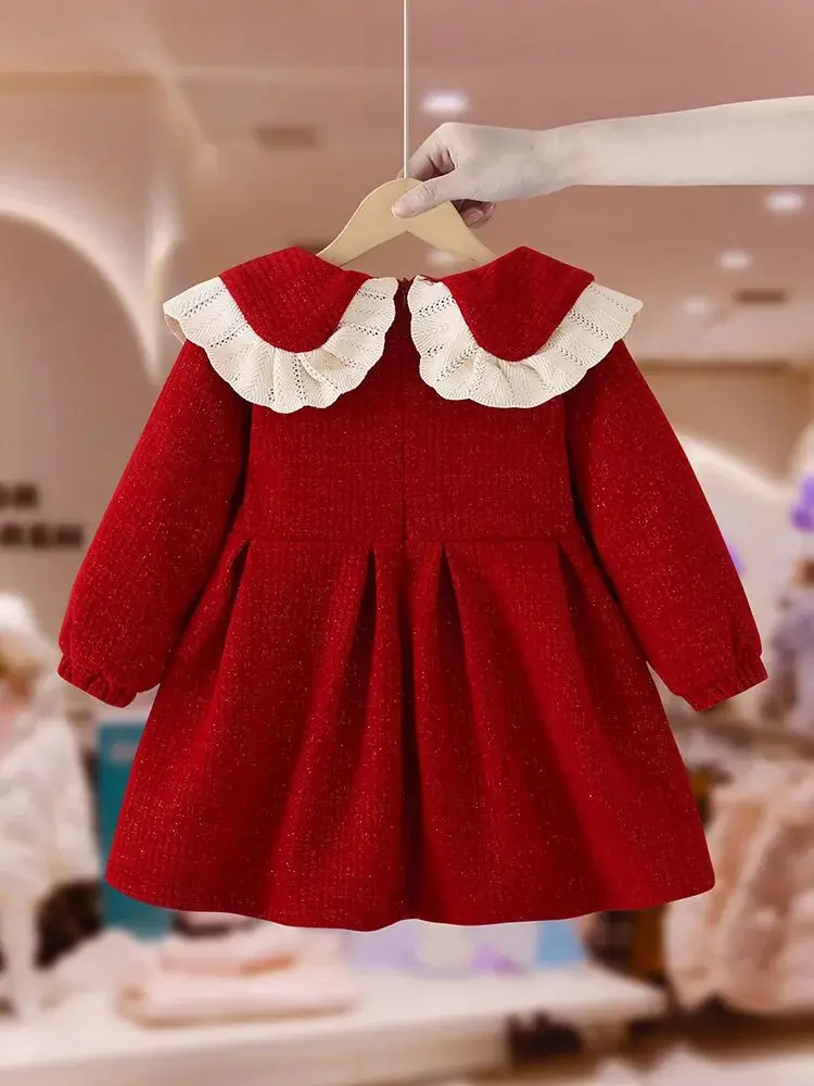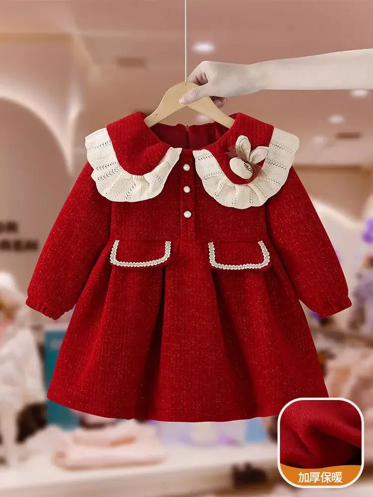 Robe De Princesse En Velours À Manches Longues Pour Enfants, Bébé Fille